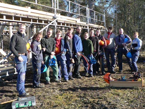 sågen .... Tre hjälpsamma och vana trädklättrare stälde upp
